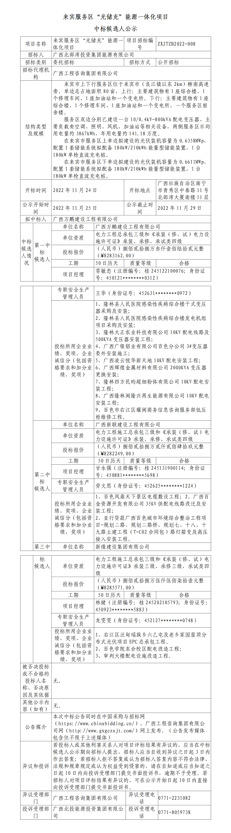 來賓服務(wù)區(qū)“光儲(chǔ)充”能源一體化項(xiàng)目中標(biāo)候選人公示