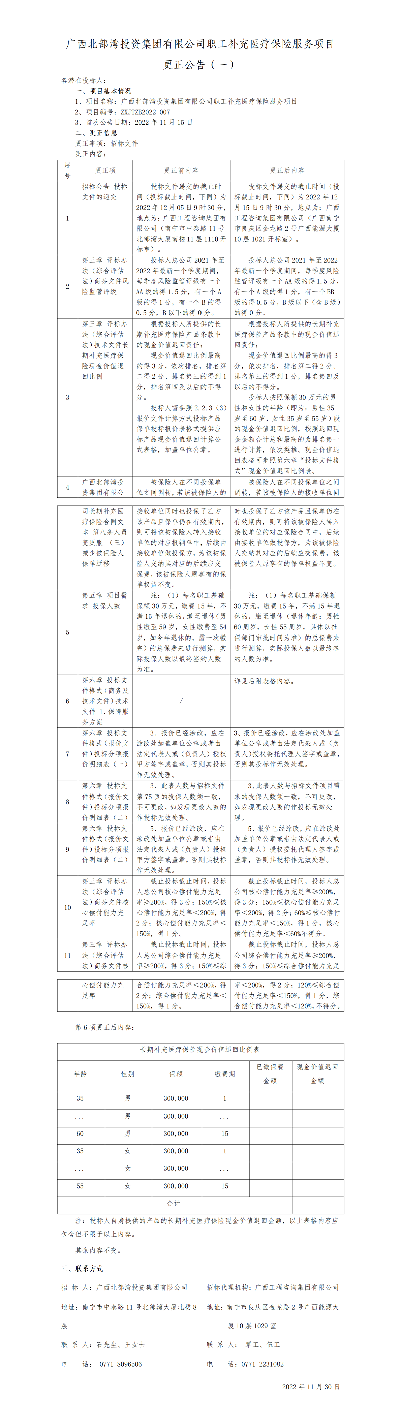 廣西北部灣投資集團(tuán)有限公司職工補(bǔ)充醫(yī)療保險(xiǎn)服務(wù)項(xiàng)目更正公告(一)