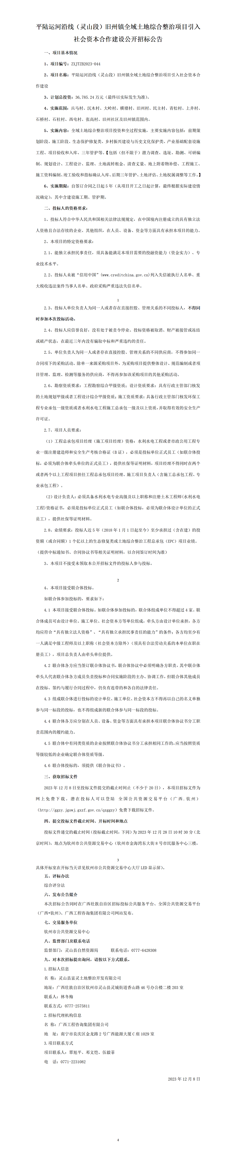 平陸運(yùn)河沿線(靈山段)舊州鎮(zhèn)全域土地綜合整治項(xiàng)目引入社會(huì)資本合作建設(shè)公開(kāi)招標(biāo)公告