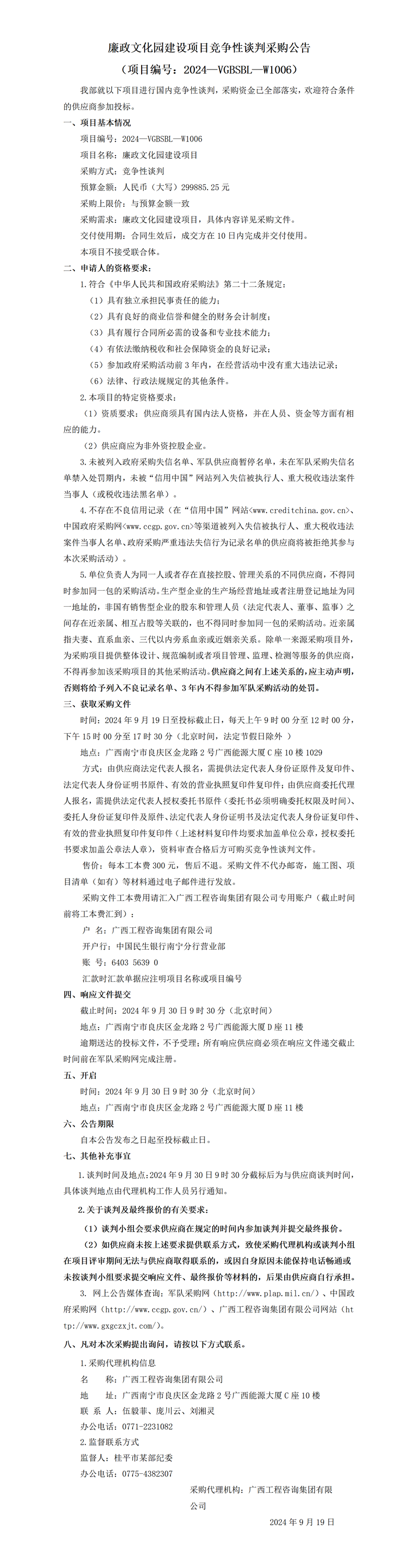 廉政文化園建設(shè)項目競爭性談判采購公告 (項目編號:2024—VGBSBL—W1006)
